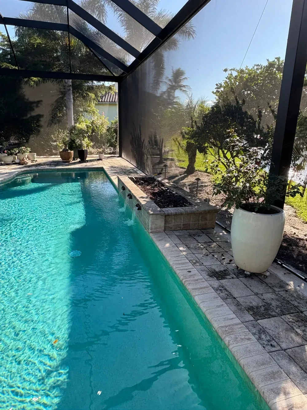 For this Bonita Springs, Florida home, Lush Lanais transformed an already-beautiful pool enclosure into a tropical lakeside sanctuary. The design blends vibrant container gardens, lush foliage, and layered color that draws the eye outward to the water.