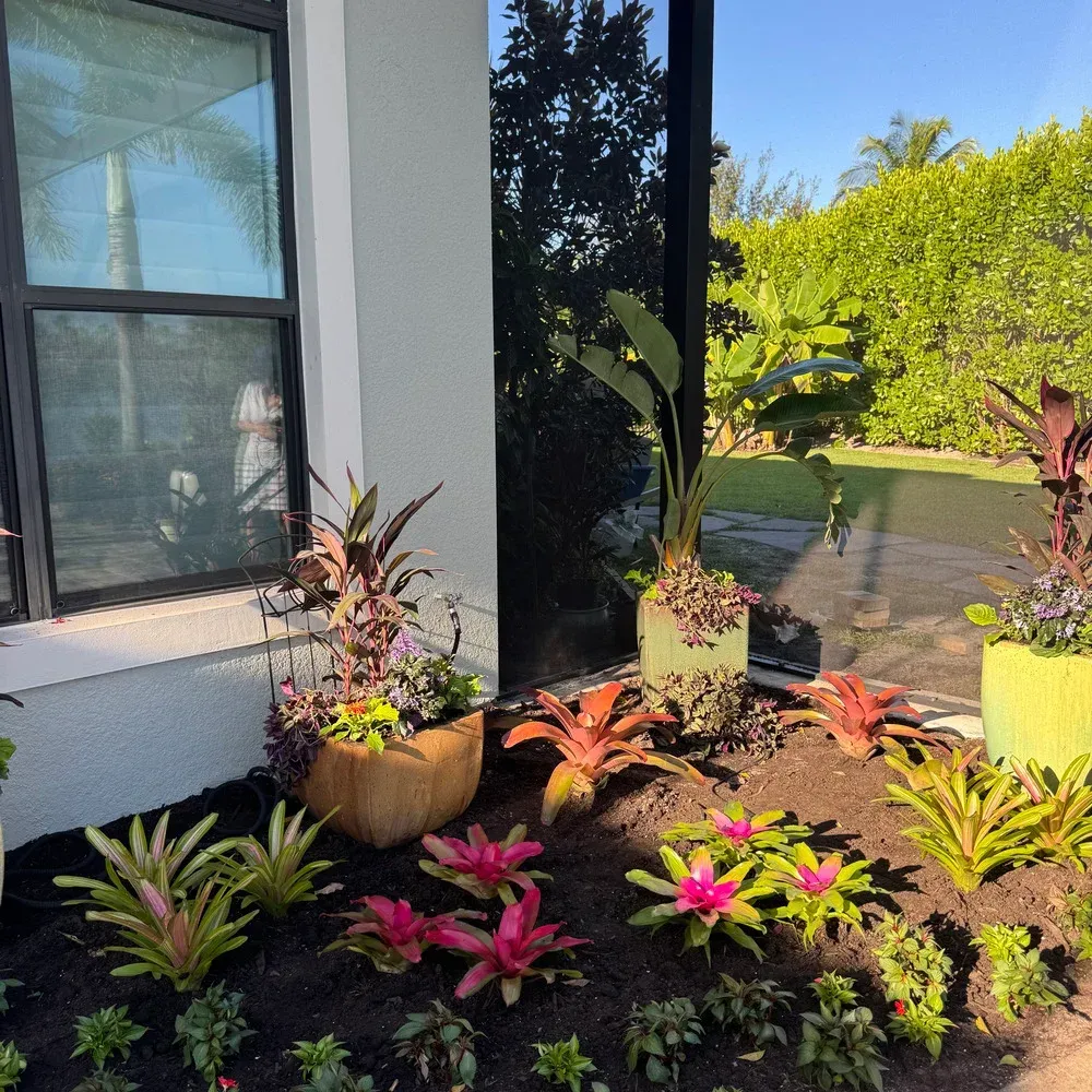 By integrating curated pottery, tropical specimens, and seasonal annuals, the new design brings balance between structure and softness. The result is a space that feels intimate yet expansive — a retreat where every corner of the lanai reflects the rhythm of nature just beyond the screen.