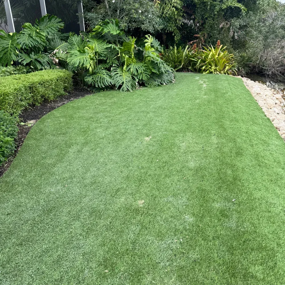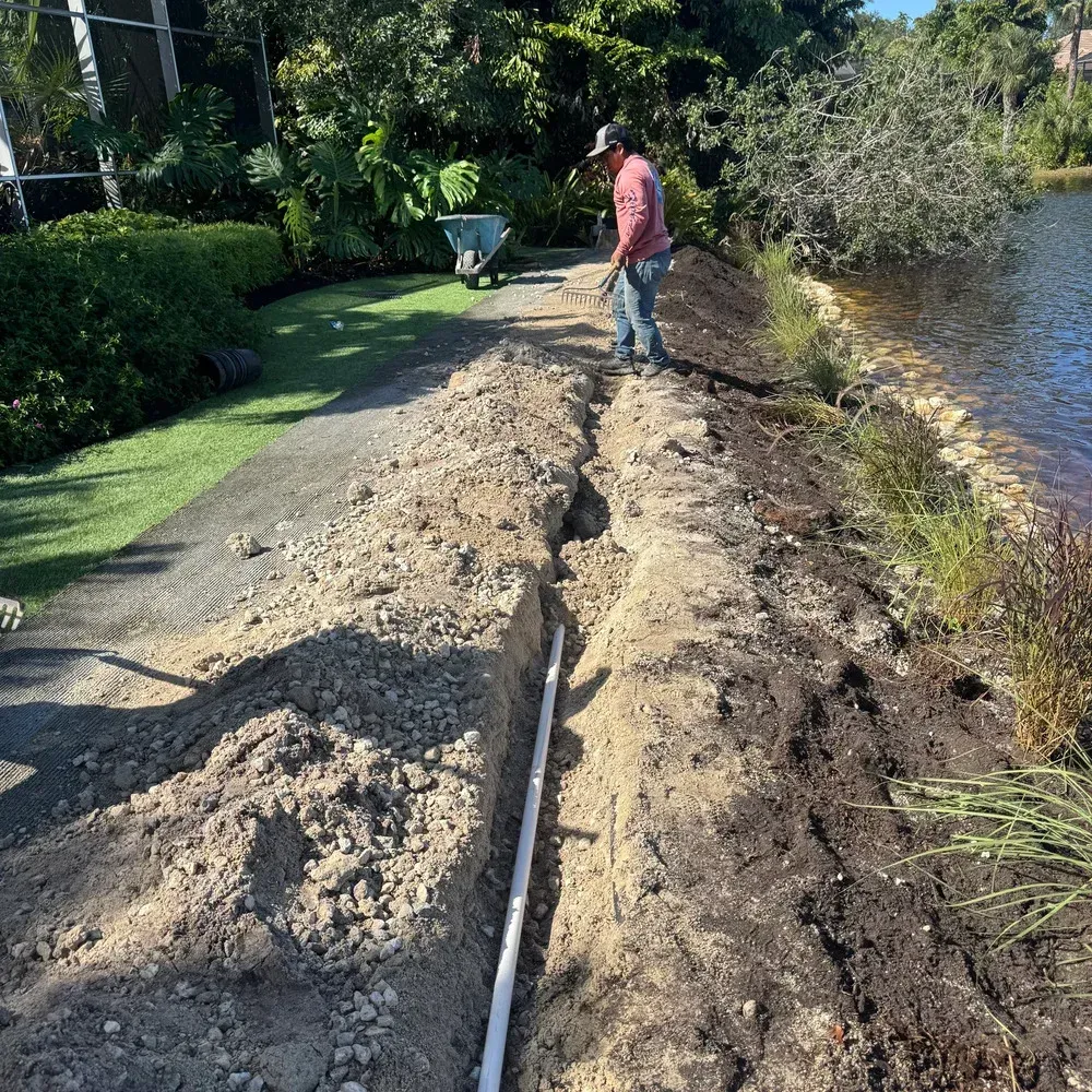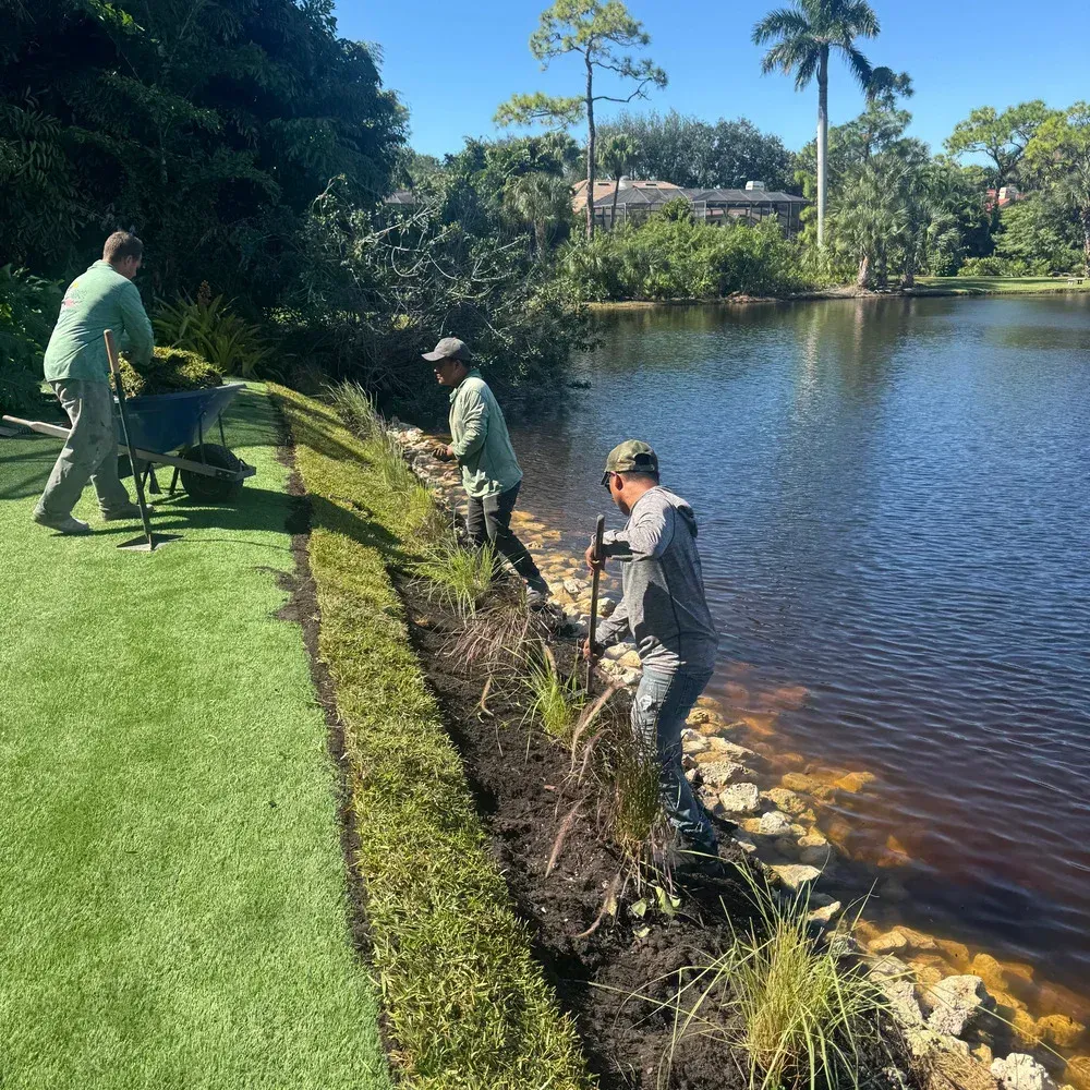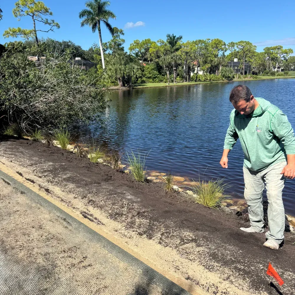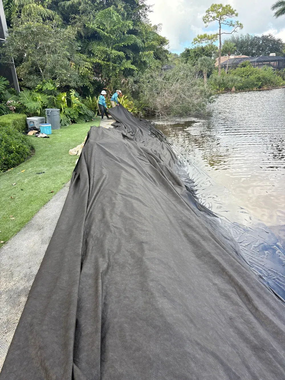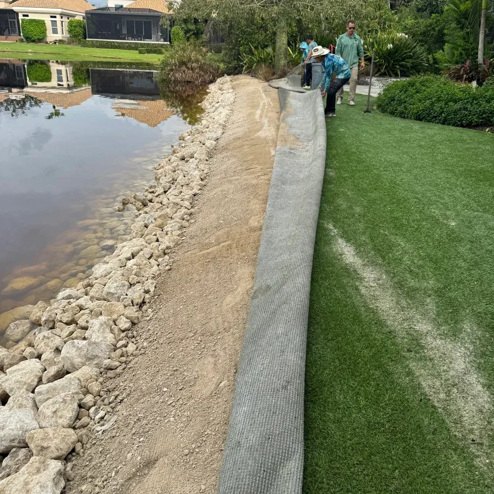 In this Naples, Florida property, the existing seawall had begun to show signs of erosion and structural wear along the lake’s edge. Lush Lanais was brought in to completely remove the failing seawall, stabilize the shoreline, and restore the natural grade using a combination of riprap stone, drainage correction, and sod restoration.